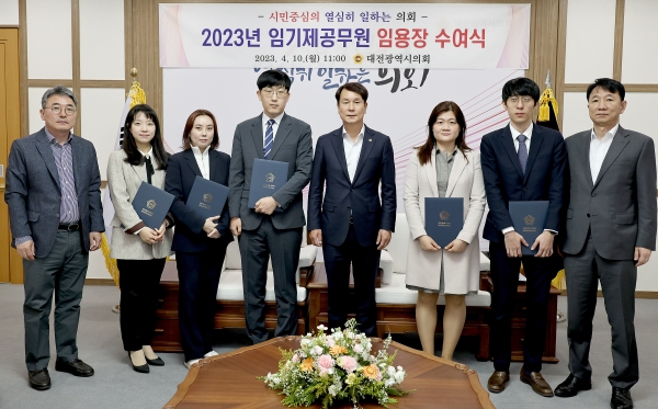 [Ytv영상스토리] 대전시의회는 지난 10일 의장 접견실에서 2023년 제1회 대전광역시의회 임기제공무원 채용시험에 최종합격한 6명에게 임용장을 교부했다고 밝혔다.
