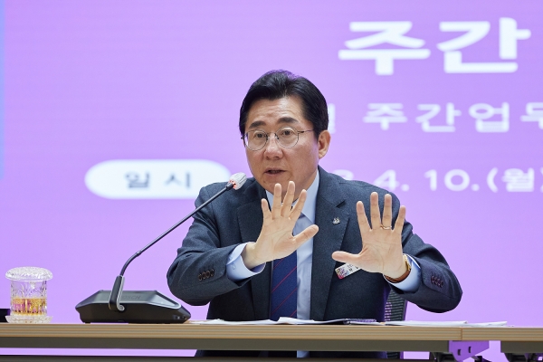 [Ytv영상스토리] 박경귀 아산시장이 10일 시청에서 열린 4월 두 번째 간부회의에서 “충남도지사 1호 공약으로 추진 중인 베이밸리 메가시티 추진사업에 대해 아산시가 원하는 3개 핵심사업이 반드시 포함되어야 한다”며 이와 관련된 역제안 신규사업 발굴을 지시했다.