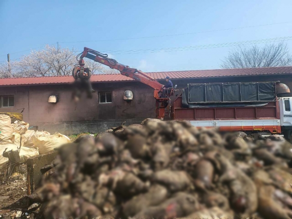 축사는 전소 21동 반소 8동으로 총 29동이 불에 탔으며 가축 피해는 세부조사 결과 당초 발표와 달리 소 44마리, 돼지 860마리, 염소 97마리, 닭 67,627마리, 기타 31마리 등 총 68,659여 마리가 조사됐다.