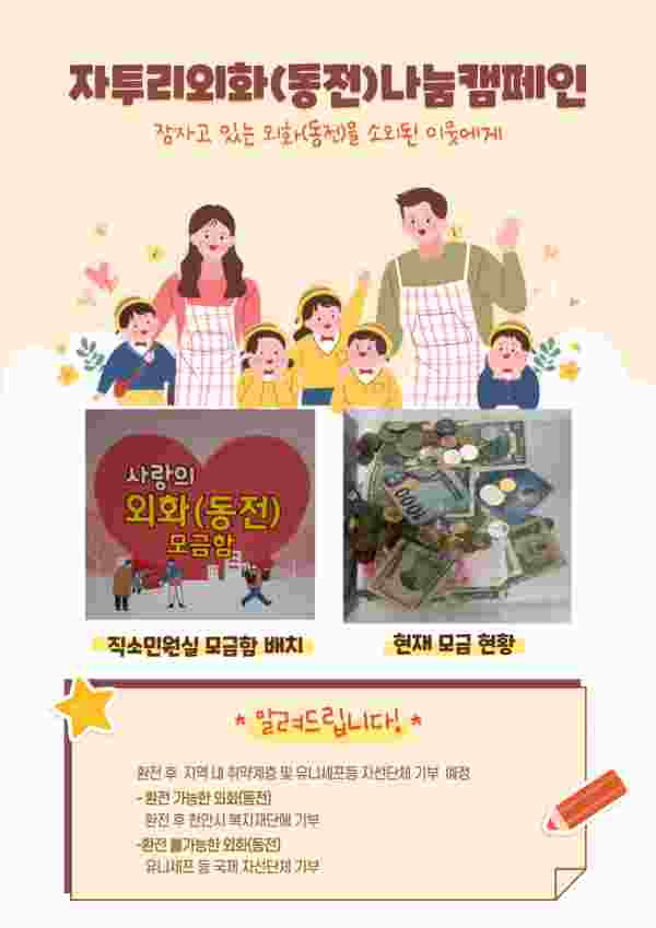 앞으로 시는 공동주택과 다양한 단체, 대학교 등에 캠페인을 홍보하고 외화 잔돈 기부를 독려할 방침이다.