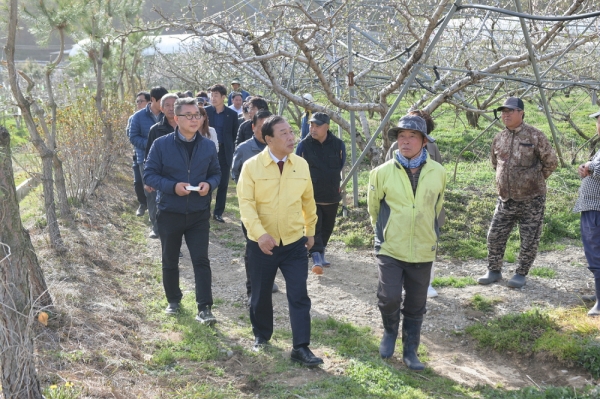 최 시장은 지난 12일 이상저온에 따라 과수 동해를 입은 전동면 송정리 일대 복숭아 과수원 현장을 찾아 농업인을 위로하고 피해 상황을 점검했다.
