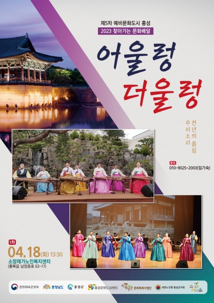 [Ytv영상스토리] 홍성군 문화특화사업단의‘2023년 찾아가는 문화배달’지원사업에 선정된 사단법인 소리너울 예술단의‘어울렁 더울렁’공연이 4월 18일 화요일 오후 1시 30분 소망재가노인복지센터에서 개최된다.