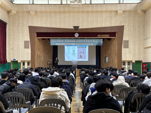 [Ytv영상스토리] 2023학년도 아산스마트팩토리마이스터고등학교 전교생을 대상으로 충청남도교육청 이병도 교육국장의 미래사회를 대비한 진로탐색 특강이 지난 4. 11. 오후 2시 30분부터 체육관에서 진행됐다.