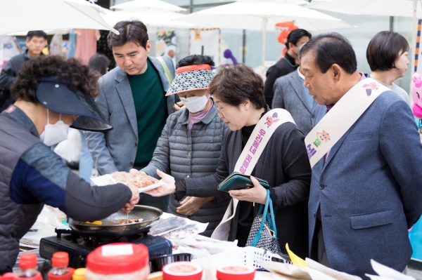 최 시장은 캠페인 이후에도 부인인 전광희 여사와 어울림 시장을 돌며 소상공인들을 격려하고 다양한 상품을 시식·구매하며 소통의 시간을 가졌다.