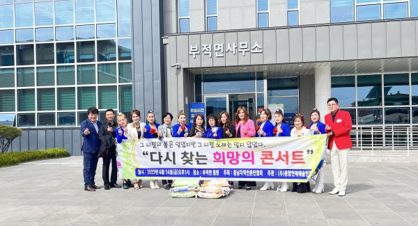 한편 이번 콘서트를 기획하고 주최한 충남지역언론인협회는 같은 날 부적면사무소를 찾아 필요한 곳에 써달라며 후원물품과 성금 70만원을 기탁했다.