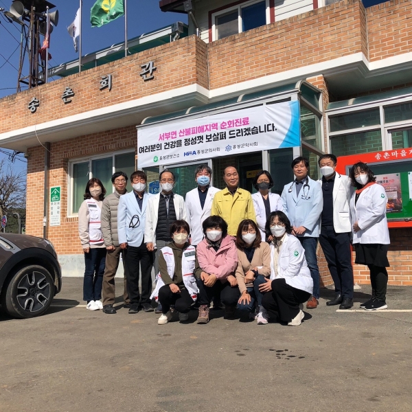 홍성군의사회 의료진과 약사회는 바쁜 일정에도 불구하고 주말을 이용해 4월 8~9일 양일간 서부면 송촌마을, 내동마을, 양곡마을 총 3개 마을을 대상으로 순회진료를 실시했고 홍성의료원 의료진은 4월 11~12일 어사마을, 소도마을, 대흥동마을 경로당을 방문해 피해 주민 진료를 펼쳤다.