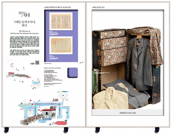 이번 전시는 임시정부 수립 이후의 주요 활동, 특히 1945년 광복 이후 임시정부의 포부를 담고 돌아오는 환국 과정에 사용된 유물 등 다양한 자료를 이동형 전시콘텐츠인 ‘기억 상자’ 4개로 구성한 것이 특징이다.