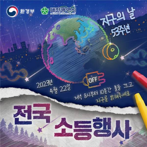 신용현 대전시 환경녹지국장은 “이번 지구의 날 행사를 통해 시민들이 기후변화의 심각성을 인식하고 저탄소 녹색생활 실천의 중요성을 생각해보는 기회가 되기를 바란다”며 “많은 시민들이 ‘지구의 날 소등행사’에 적극 동참해 주기를 바란다”고 말했다.