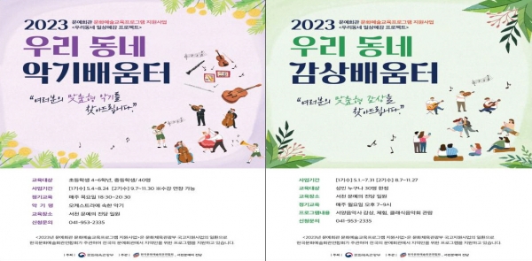 이명란 문화예술과장은 “문화 향유 기회가 비교적 적은 서천에서 다양하고 지속적인 문화 예술교육을 통해 문화 격차가 해소될 수 있게 적극적인 노력을 하겠다”고 밝혔다.