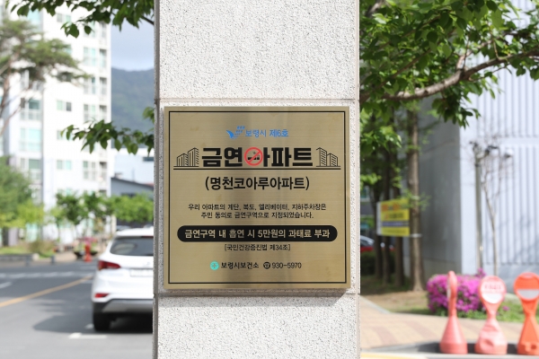 이번 보령시 제6호 금연 아파트는 주민들의 자발적 참여로 지정됐으며 금연 구역으로 아파트 복도와 계단, 엘리베이터, 지하 주차장을 설정했다.