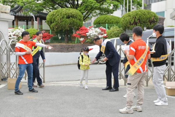 이날 활동은 최원철 시장을 비롯해 공주교육지원청 류동훈 교육장, 송영월 시의원, 환경사랑 학부모회, 공주시 인명구조대원 등 60여명이 참가해 초등학생 등교 시간에 맞춰 실시됐다.