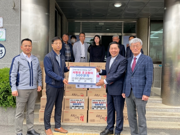 [Ytv영상스토리] 예산군 고덕면 소재 ㈜동양플랜트사업본부 예산공장은 지난 25일 어버이날을 앞두고 관내 어르신을 위한 초코파이 500상자를 기탁했다.