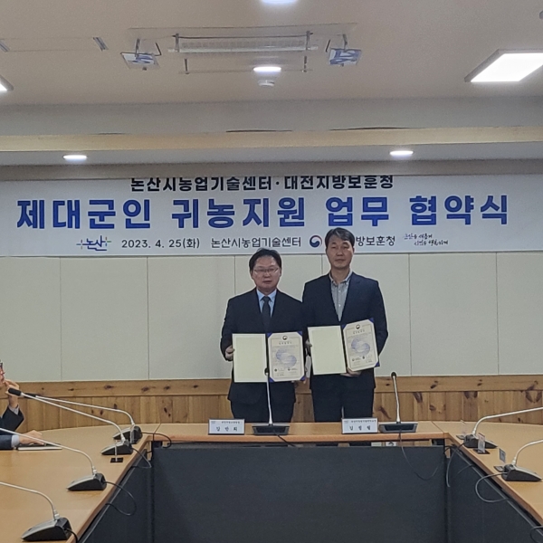 양 기관은 지난 25일 오전 논산시 농업기술센터 상황실에서 제대군인 및 가족을 비롯한 업무 관계자 30여명이 참석한 가운데 ‘제대군인 귀농귀촌 활성화를 위한 업무협약’을 체결했다.