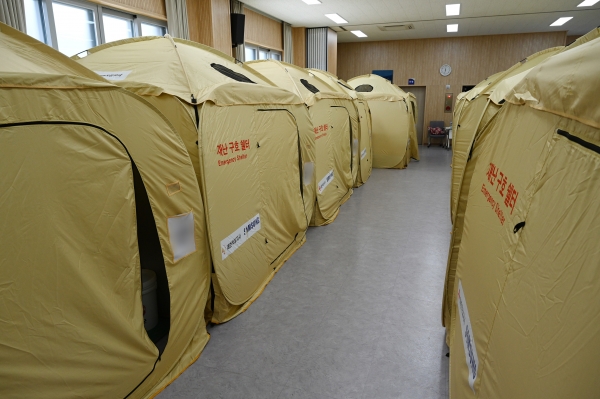임시주거용 조립주택은 27㎡ 규모로 싱크대, 붙박이장, 신발장. 냉난방기 등이 갖췄으며 이재민의 신속한 입주를 위해 사전 제작을 의뢰했다.