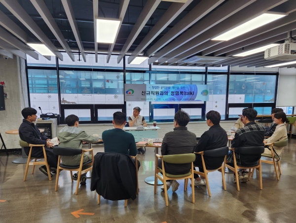 [Ytv영상스토리] 천안시는 26일과 27일 각 2회씩 모두 4회에 걸쳐 천안청년센터 이음에서 8급 이하 신규직원들을 대상으로 신규직원과의 ‘청렴톡’을 진행했다.