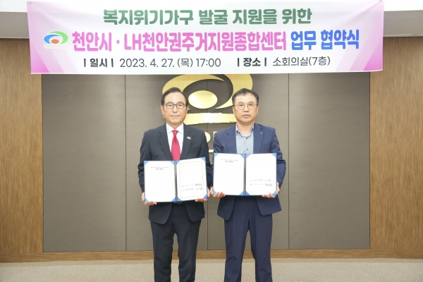 시는 이번 LH천안권주거지원종합센터 외에도 우체국, 법원, 편의점, 4대 종교단체 등 11개 기관과 업무협약을 맺고 복지사각지대 위기가구 발굴에 대한 관심과 협조를 구했다.