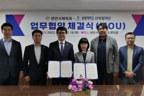 먼저 상명대학교 천안산학협력단과의 업무협약은 한남교 천안시체육회장과 왕한호 상명대학교 천안산학협력단장 등 관계자 10여명이 참석한 가운데 양 기관의 공동 발전을 도모하기로 했다.