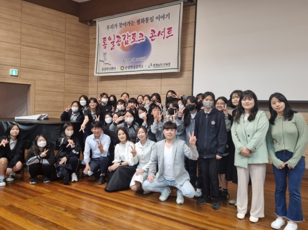 [Ytv영상스토리] 온양한올중학교은 28일 5.6교시 웨슬리홀에서 중학교 1학년 학생 및 독서토론 동아리 학생들을 대상으로 통일정책과 남북관계 현안 및 북한이탈주민의 긍정적 인식 확산을 도모하기 위한 통일공감 토크 콘서트를 진행했다.