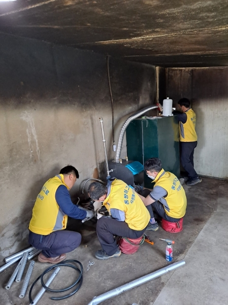 주)동방아그로에서는 보일러교체 봉사 외에 전기재료 등 구입해 보일러실 하수도관 수리, 전기수리교체 등 재능봉사를 펼쳐 보일러실 사용하는 데 불편함이 없도록 나눔봉사에 대한 의미를 나누기도 했다.