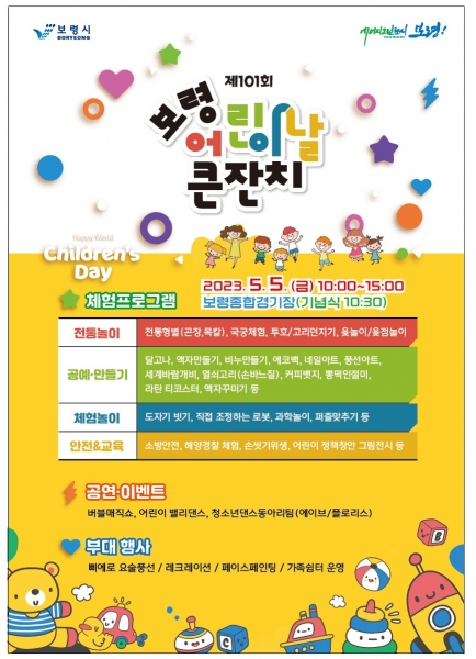 보령시는 오는 5일 오전 10시부터 보령종합체육관에서 어린이 및 가족, 시민 등 5000여명을 대상으로‘제101회 보령 어린이날 큰잔치’를 개최한다.