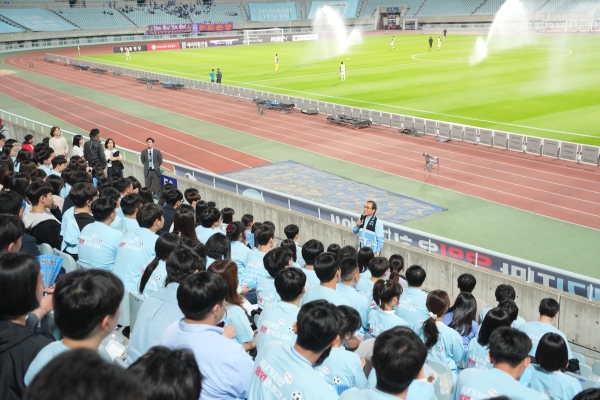 [Ytv영상스토리] 천안시는 지난 2일 오후 천안시티FC와 FC안양 경기가 열린 천안종합운동장에서 240여명의 새내기 공무원과 축구 홈경기를 관람하는 ‘새내기 공무원과의 소통데이’행사를 개최했다.