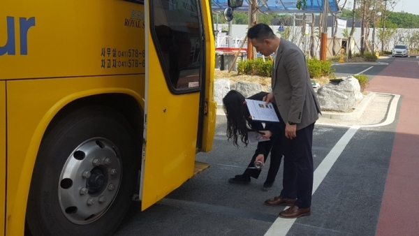 아산교육지원청은 지난 4월 14일 현충사 대형버스 주차장에서 관내 어린이통학버스 운영교 중 점검대상교를 대상으로 관계기관 합동 어린이통학버스 안전점검을 실시한 후 점검이 필요한 교에 대해 추가 점검을 실시하고 있다.