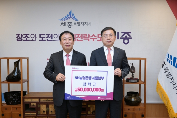 김기관 본부장은 “이번 기탁을 통해 지역 인재들에게 꿈을 이루기 위한 발판을 마련하는데 보탬이 되어 기쁘다”며 “앞으로도 NH농협은행 세종본부는 신뢰를 바탕으로 지역과 함께 성장하고 호흡하는 기업으로 거듭나도록 노력하겠다”고 말했다.
