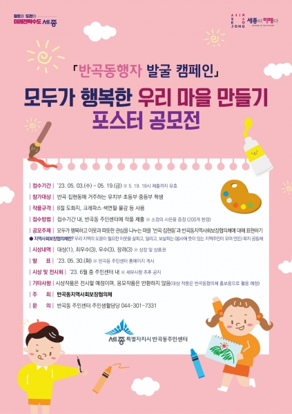 [Ytv영상스토리] 세종특별자치시 반곡동지역사회보장협의체가 지난 3일부터 오는 19일까지 ‘모두가 행복한 우리 마을 만들기 포스터 공모전’을 개최했다고 밝혔다.
