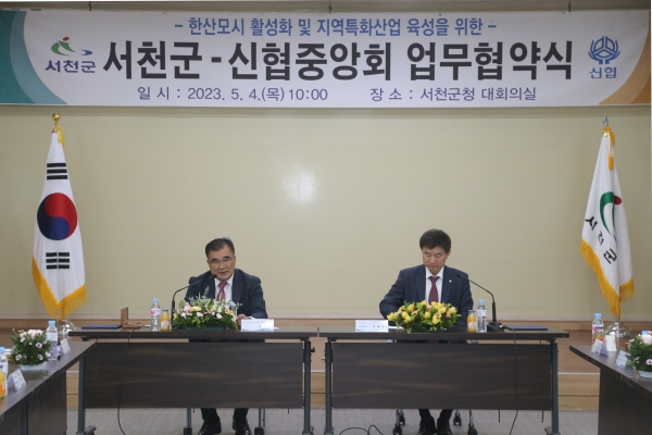 군은 지난 4일 서천군청 대회의실에서 김기웅 서천군수와 송재근 신협사업대표이사 등 관계자 15명이 참석한 가운데 한산모시 산업 발전을 위해 공동의 노력을 다하고자 협약식을 가졌다.