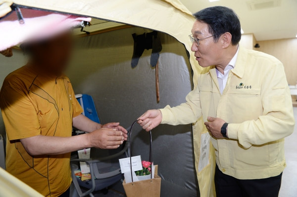 또한, 국응서 홍성군청 공무원 노동조합 위원장은 “이번 산불 피해로 어려움을 겪고 있는 어르신들에게 약소하게나마 카네이션을 전달해 드린다”며 따뜻한 위로의 말을 전했다.