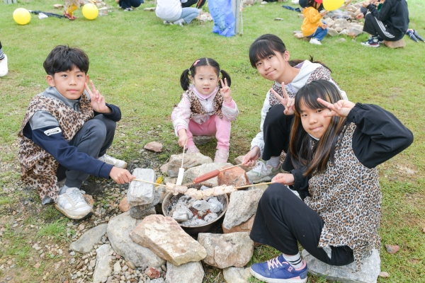 여기에 오감으로 익히는 ‘구석기 음식나라’에서는 불과 꼬치를 이용해 고기와 감자, 옥수수 등 음식 재료를 직접 구워 먹는 재미를 만끽했다.
