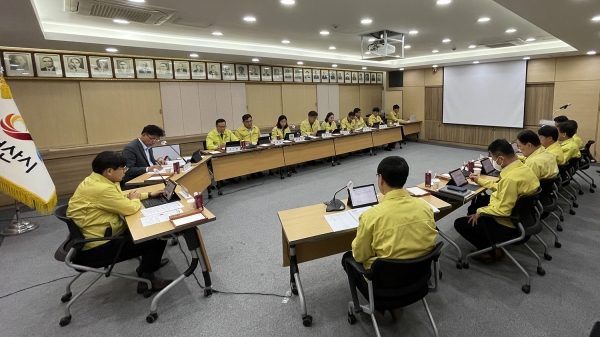 시는 지난 9일 시청 상황실에서 구상 서산시 부시장 주재로 11개 협업부서와 민간 자문위원이 참석한 가운데 여름철 집중호우로 인한 ‘침수피해 예방 및 복구지원 대책회의’를 개최했다고 밝혔다.