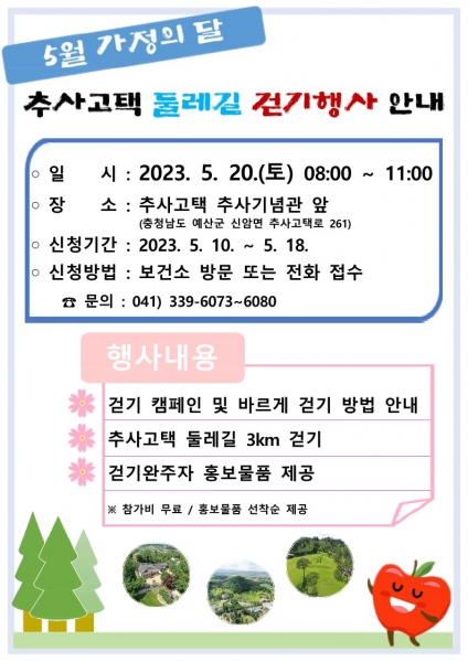 예산군보건소, 가족과 함께하는 추사고택 둘레길 걷기 행사 개최