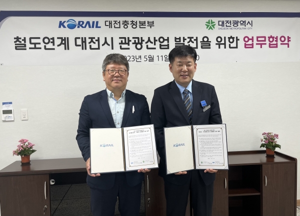 이날 협약은 박승원 대전시 관광진흥과장과 이재훈 한국철도 대전충청본부 대전역장이 참석해 체결했으며 양 기관은 대전지역 관광발전 및 활성화를 위한 상호 교류를 강화하기로 약속했다.