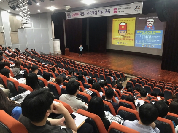 [Ytv영상스토리] 아산시가 지난 10일 시청 시민홀에서 ‘적극 행정 직원 교육’을 진행했다.