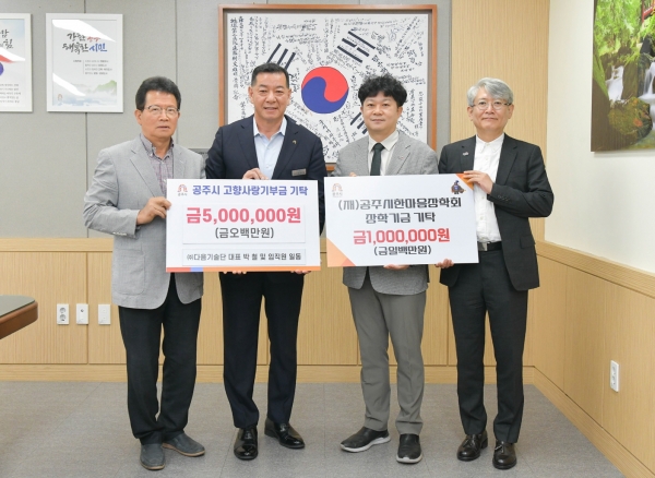 [Ytv영상스토리] 공주시는 다음기술단 박철 대표와 임직원들이 고향사랑기부금과 공주시한마음장학회 장학기금을 지난 11일 전달했다고 밝혔다.