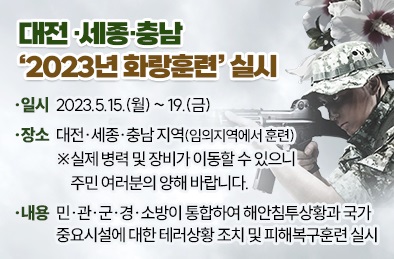[Ytv영상스토리] 천안시는 15일~18일 2023년 화랑훈련이 충남·대전·세종 전 지역에서 4년 만에 실시된다고 밝혔다.