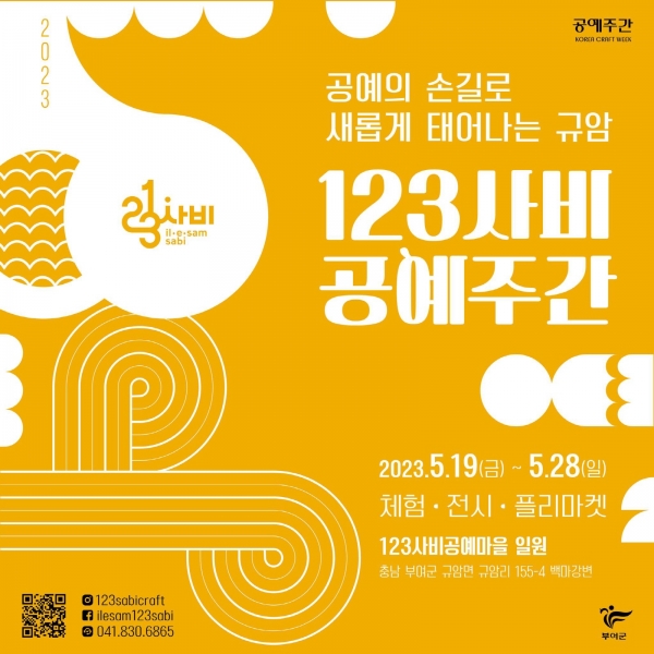 123사비 공예주간 행사는 전시, 체험, 플리마켓 등 생산과 소비 활동이 만나는 장으로 공예마을 곳곳에서 공예를 즐기는 방법을 공유하며 쓰임새가 좋고 만듦새가 아름다운 물건을 곁에 둔 풍요로운 일상을 경험할 수 있다.
