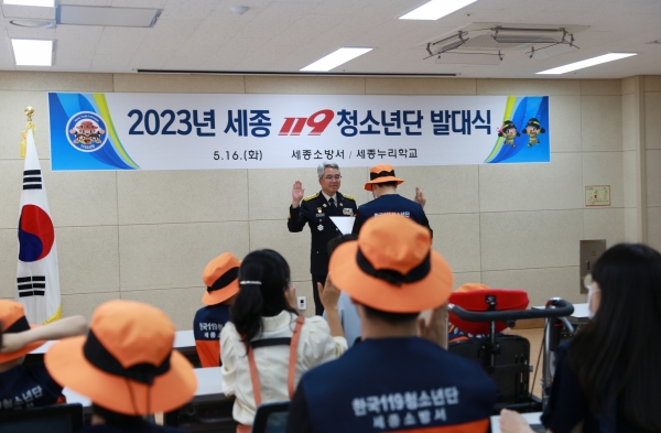 한편 1963년에 창단한 119청소년단은 안전에 대한 의식과 습관을 기르는 건강한 청소년 육성을 목표로 하고 있으며 올해 세종소방서는 일반학교 4개, 특수학교 2개교 학생 총 175명으로 활동을 시작한다.