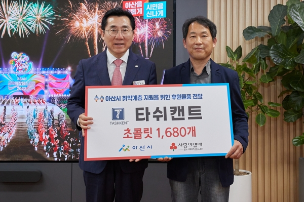 [Ytv영상스토리] 타쉬캔트가 지난 16일 아산시에 취약계층 아동을 위해 초콜릿 1680세트를 후원했다.