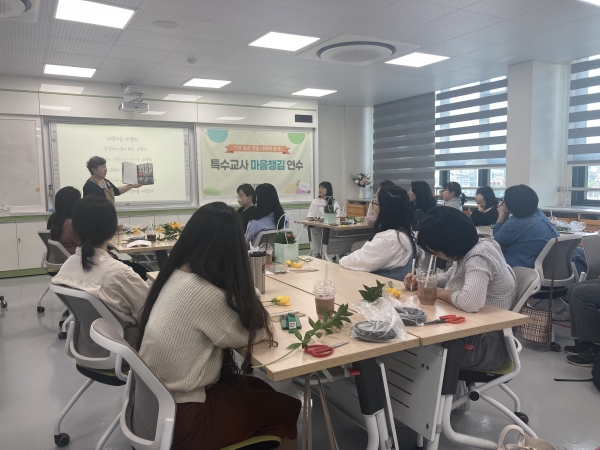 연수 내용은 그림책을 읽으며 자신의 소중함과 존재감을 깨닫고 여러 가지 생화로 자신의 기분을 표현해 보는 ‘그림책 원예’와 온몸 호흡, 바디스캔, 아로마 요가, 사운드 테라피 등을 통한 자기돌봄명상과 밸런스 호흡, 치유음악명상 등 예술치유 활동을 통해 자신을 찾아가는 ‘마음챙김 치유요가’로 구성됐다.