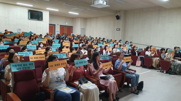 이날 5월 초 사전 신청을 통해 선정된 140여명의 부모가 참여한 가운데 ‘똑·똑·한 부모교육’이란 주제로 1부 강은정 충남중부아동보호전문기관 관장의 아동 권리 및 아동학대의 이해 아동학대 사례 및 유형, 2부 이민주 이민주육아연구소장의 ‘똑소리 나는 훈육’이란 주제의 양육자가 가져야 할 올바른 마음가짐 및 아동 양육 방법 교육이 진행됐다.