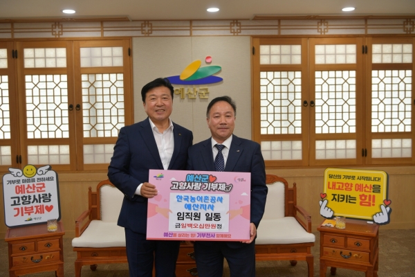 예산우체국과 농어촌공사예산지사 임직원은 지난 18일 군을 방문해 고향사랑 기부금을 기탁하고 응원의 메시지를 전했다.