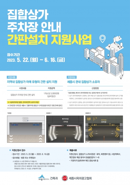 [Ytv영상스토리] 세종특별자치시가 관내 집합상가 방문객들이 주차장을 보다 쉽게 찾을 수 있도록 집합상가에 ‘주차장 안내 간판 설치’를 지원하기로 하고 지난 22일부터 다음달 19일까지 신청을 받는다.