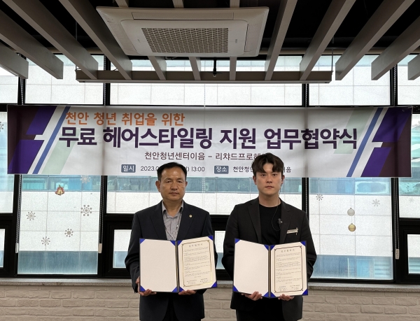 이번 협약에 따라 리챠드프로헤어는 천안청년센터 이음 사업에 참여 중인 미취업 청년 40명에게 무료 헤어스타일링 혜택을 제공한다.