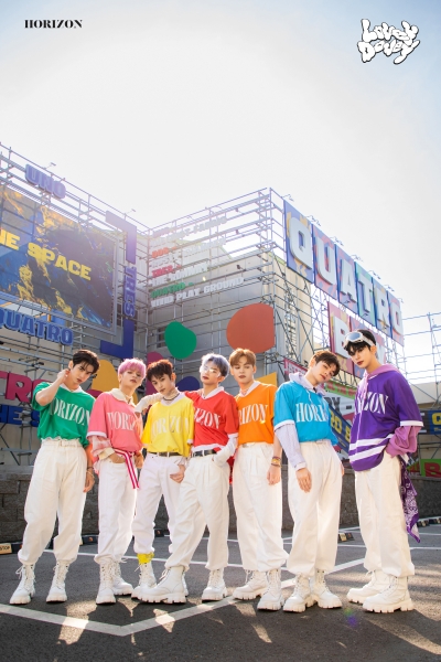이미지 속 호라이즌은 저마다의 개성이 드러나는 무지갯빛 착장으로 화사한 분위기를 연출, 다채로운 컬러의 헤어 스타일링을 소화해 내며 물오른 비주얼을 자랑하고 있다.