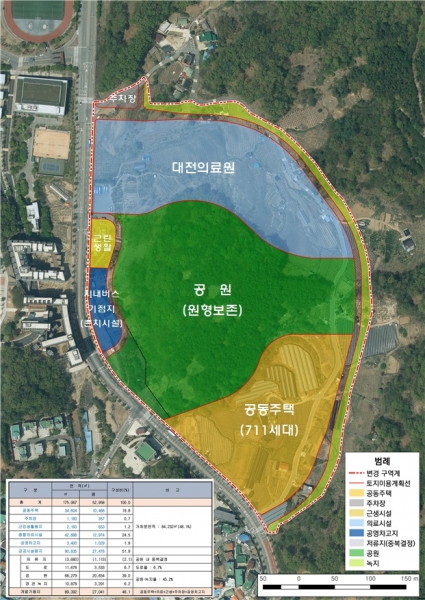 특히 개발제한구역 조정지침에 따라 선량지구 중앙 부분 환경평가 2등급지와 북측 우선 해제 집단취락지구를 제척하면서 오히려 대전의료원 부지 면적이 42,888㎡에서 37,251㎡로 감소한 상태였다.
