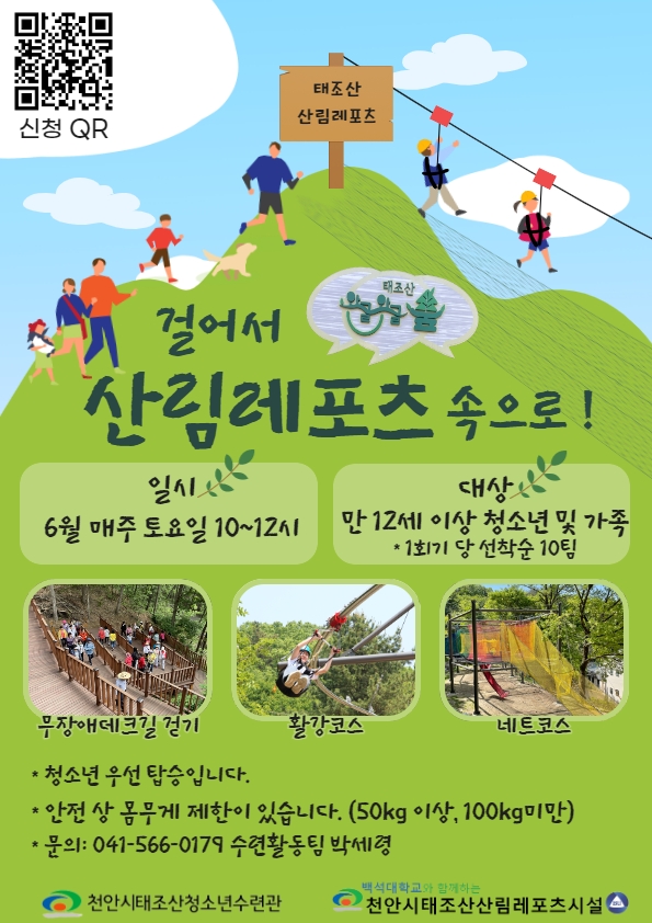 [Ytv영상스토리] 천안시태조산청소년수련관은 6월 ‘걸어서 산림레포츠 속으로’를 운영한다고 밝혔다.