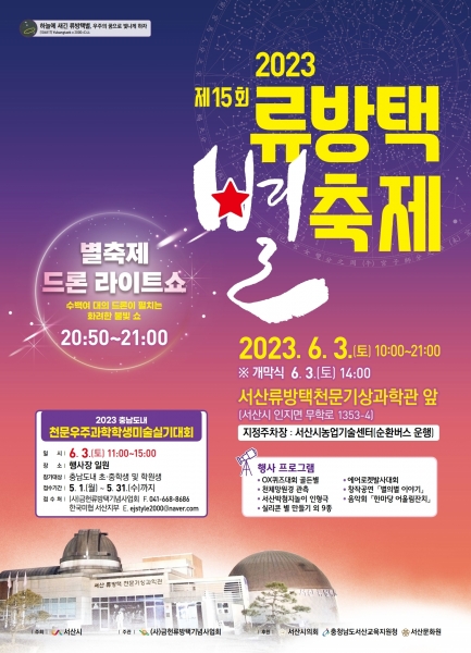 [Ytv영상스토리] 충남 서산류방택 천문기상과학관 일원에서 서산 출신 천문학자 류방택 선생을 주제로 청소년들에게 천문과학에 대한 호기심을 자극하고 관심을 심어줄 ‘제15회 류방택 별축제’가 6월 3일에 개최된다.