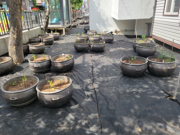 성정2동은 행정복지센터 청사 일부에 도로변 등 화단으로 사용 후 보관 중인 대형 화분을 활용해 텃밭을 조성했다.